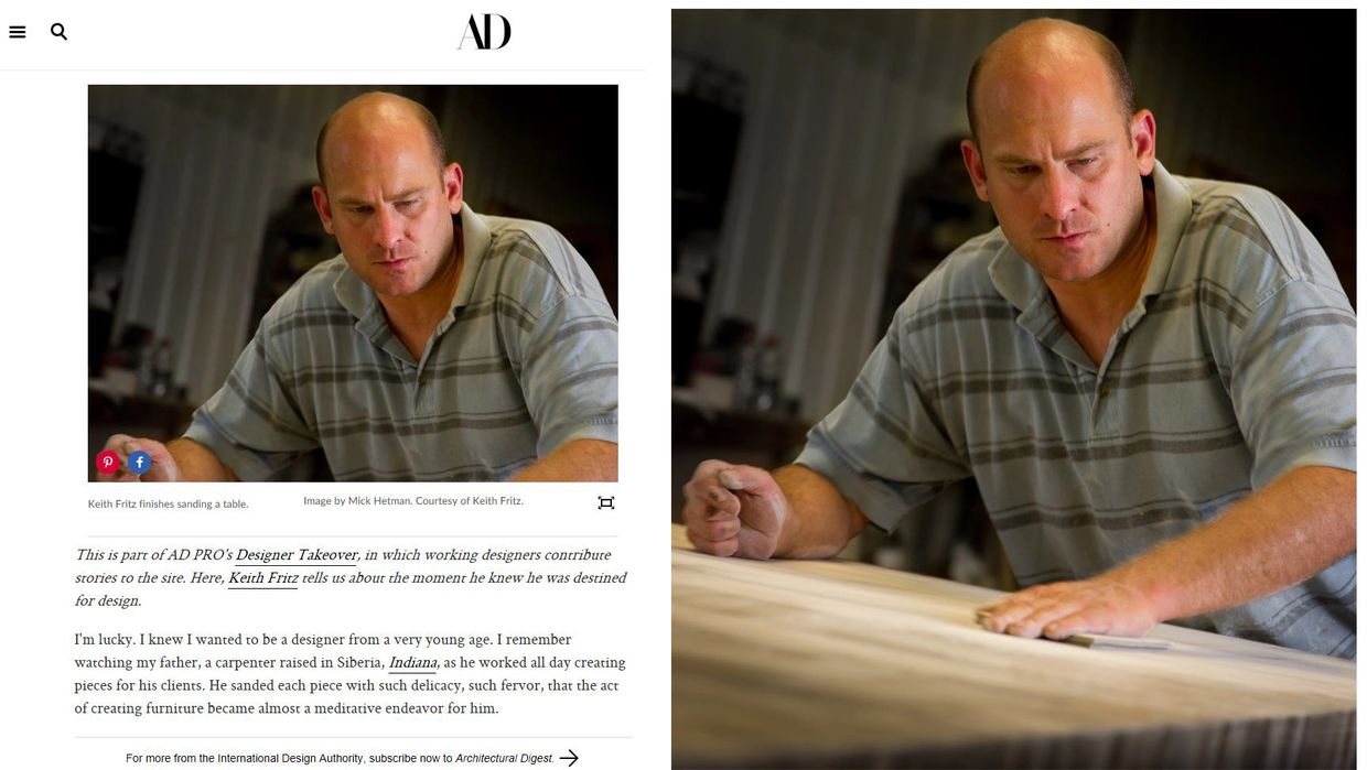 Keith Fritz, master artisan and owner at Keith Fritz Fine Furniture, sands by hand to find the perfect texture. Painstaking preparation culminates in deep and glorious finishes that elevate his brand. Let's elevate your brand.